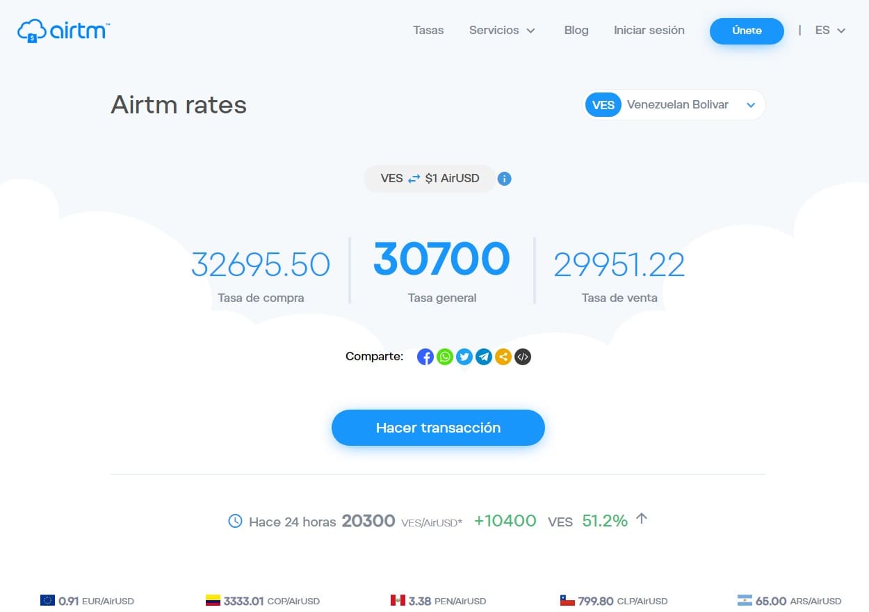 Adicionalmente si deseas ver las tasas, Airtm te brinda una herramienta completamente gratuita, puedes verificar Airtm rates.